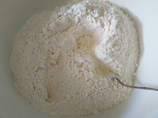 Смешиваем 400 г муки с солью, горчицей и карри.