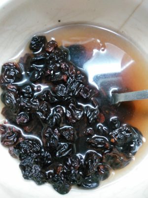 Изюм запариваем кипятком и тоже даем набухнуть.