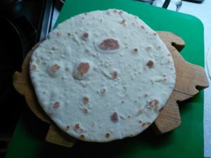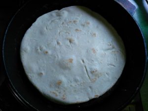По очереди жарим каждую тортилью, выкладывая их остывать на деревянную поверхность (чтоб не было конденсата).