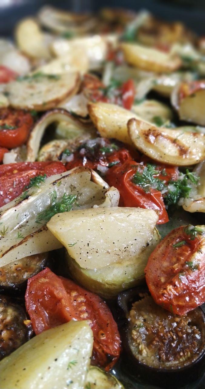 Количество овощей варьируйте в зависимости от размера противня и предпочтений.