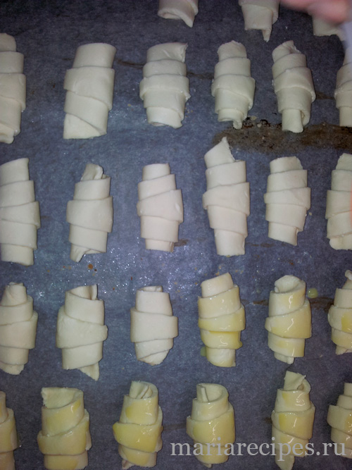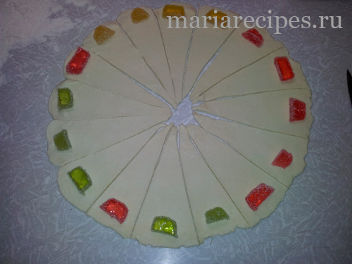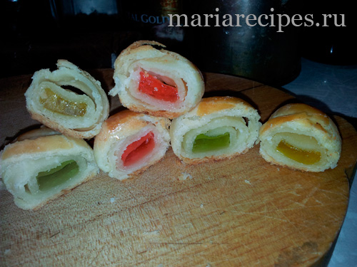 Из этого же теста получаются замечательные рогалики. Если внутрь положить разноцветный мармелад, то получается очень ярко и празднично.