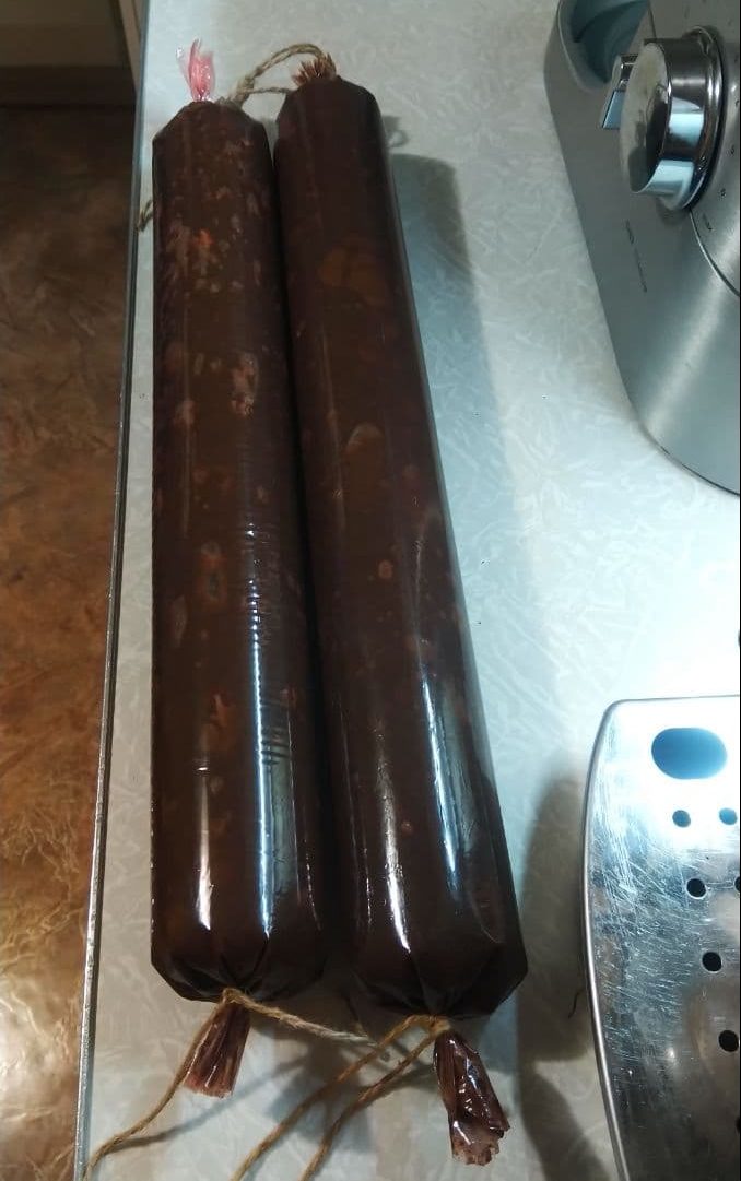Как только колбаса застынет и примет окончательную форму, её можно отправить на хранение в холодильник.