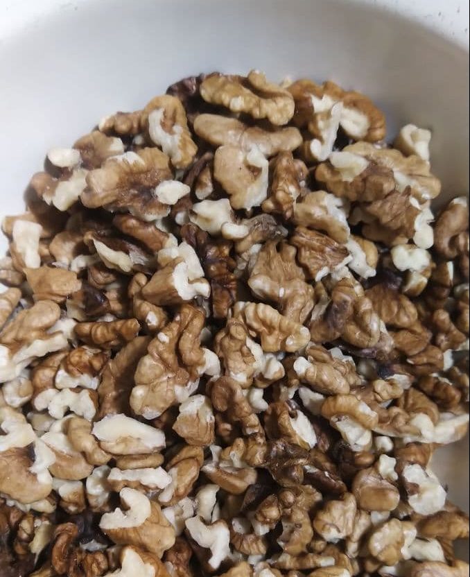 Орехи тоже не мельчим, достаточно разобрать их на половинки или четвертинки.