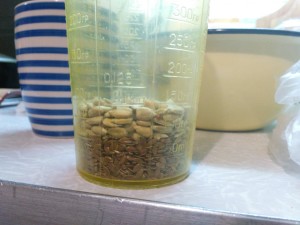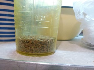 Добавляем семечки. Не забываем, что у нас все в миллилитрах! Насыпаем лен.