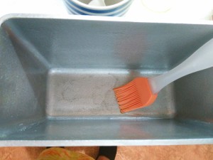 Тесто получается липким. Форму смазываем маслом.
